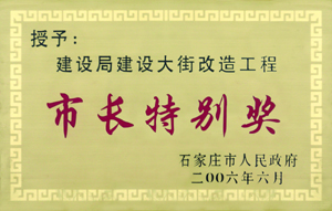 我公司2006年承建的建設(shè)大街工程,10個(gè)月的工期僅用100天便優(yōu)質(zhì)高效地完成了施工任務(wù),獲石家莊市“市長(zhǎng)特別獎(jiǎng)”。
